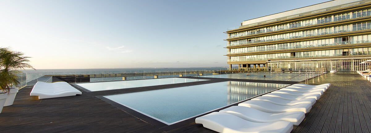 Die 124 Zimmer sind modern, lichtdurchflutet und in warmen Farbtönen gestaltet. Große Glasfronten geben den Blick auf das Meer, den Hafen oder die Dächer der Altstadt frei. Alle Zimmer verfügen über eine private Terrasse – perfekt, um den Sonnenuntergang über dem Atlantik zu erleben.