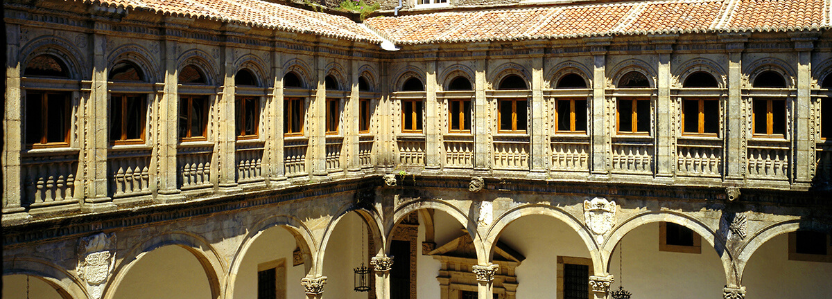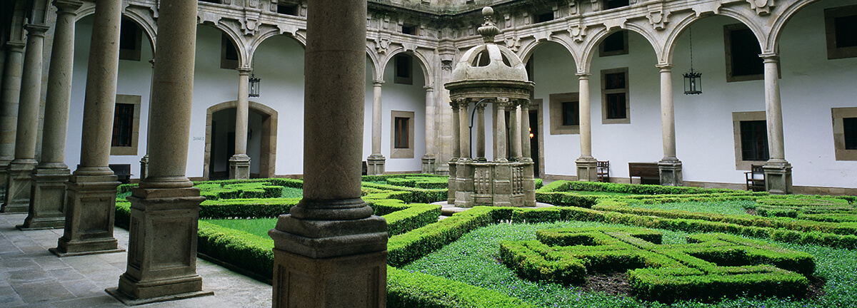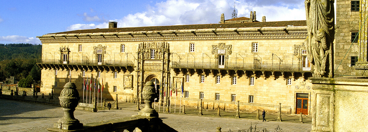 Der Parador Hostal dos Reis Católicos, 1499 als königliches Krankenhaus für den anwachsenden Pilgerstrom gegründet, gilt heute als das älteste Hotel der Welt und ist eine Mischung aus Geschichte, Kunst und Tradition, Traum der Pilger und Symbol von Santiago. Er befindet sich auf der Plaza del Obradoiro neben der Kathedrale von Santiago de Compostela, einer der meistbesuchten Kathedralen der Welt, und hat im Laufe der Jahrhunderte das Pilgertum miterlebt. Er wurde als königliches Krankenhaus gegründet, um den Katholischen Königen eine Unterkunft zu bieten, und heute ist er als Hostal dos Reis Católicos bekannt. Das historische Gebäude bewahrt die platereske Fassade an der Außenseite, vier Kreuzgänge, elegante Korridore und Flure, spektakuläre Räume und Säle sowie ein Museum im Inneren.
