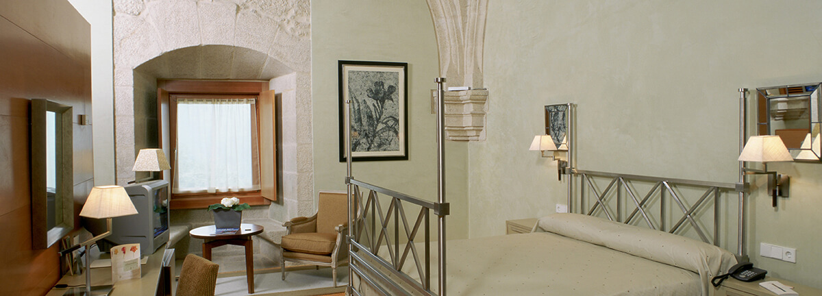 Das Hotel verfügt über 77 Zimmer, die sich über drei Kreuzgänge verschiedener Stile und Epochen verteilen. Die Zimmer beeindrucken wegen ihrer Unterschiedlichkeit. Einige davon mit beeindruckenden Aussichten über die Landschaft der Schluchten des Flusses Sil. Cafeteria mit Terrasse im Eingangskreuzgang, große und schöne Veranstaltungsräume, sowie eine wunderbare Gartenanlage. Ruhe und Frieden findet man überall an diesem herrlichen Ort auch im exklusiven SPA, das einen herrlichen Ausblick bietet.