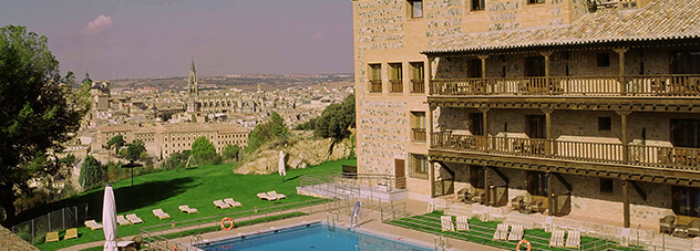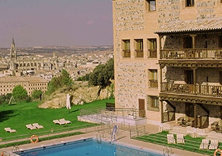 Der Parador von Toledo liegt auf der Anhöhe des Cerro del Emperador, direkt über der Fluss-Schlaufe des Tajo. Von den Zimmern und der Hotelterrasse haben Sie einen fantastischen Panoramablick über die Altstgadt von Toledo wie die Kathedrale, der Alcázar und die Synagogen. Das Räumlichkeiten des Hotels sind groβzügig und luxuriös gestaltet. Die komfortable Einrichtung verschmilzt mit den Elementen im Mudejarstil. Neben einem komfortablen Mobiliar finden sich hier alte Deckenbalken, Treppen, Handläufe aus Holz und einzelne Elemente des Mudejarstils in Teppichen und Wandfliesen. Das warme und gemütliche Ambiente der Gästezimmer empfängt den Gast mit Herzlichkeit. Die Terrasse, Salons und viele Zimmer bieten einen herrlichen Ausblick über die kaiserliche Stadt. Exzellentes Restaurant - im Speisesaal werden typische Speisen aus der Region Kastilien-La Mancha angeboten, wie zum Beispiel Perdiz estofada a la castellana (Rebhuhn). Gegrilltes Lamm, Käse- und Honigeis und Marzipan.