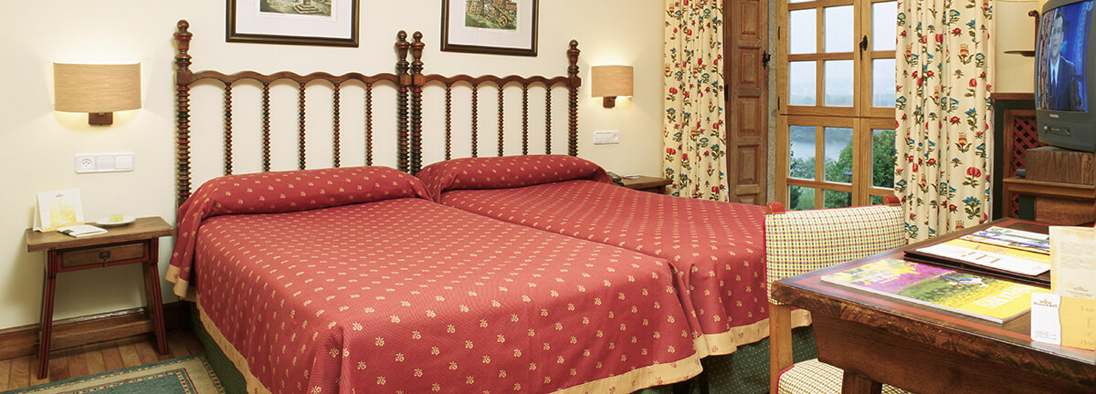 Das Hotel der historischen Stadt Tui, an der Grenze zu Portugal, spiegelt ein ländliches galizisches Stadthaus wieder. Umgeben von Bergen und von Flüssen durchzogen bietet die Landschaft einen ganz besonderen Charme. Mit seinen Granitmauern, mit Böden, Dächern, Balken und Treppen aus galizischem Kastanienholz, werden die Ornamente der typischen Stadthäuser dieser Gegend nachgebildet. Die zarten Töne der Wände und die rustikalen Möbel schaffen ein gemütliches Flair und in die komfortablen Zimmer strahlen Ruhe aus. Außerdem besitzt es ein hervorragendes Schwimmbad und einen schönen Garten.