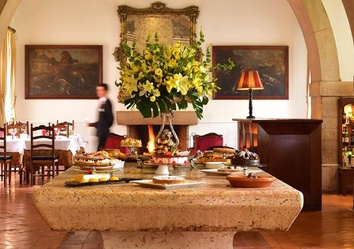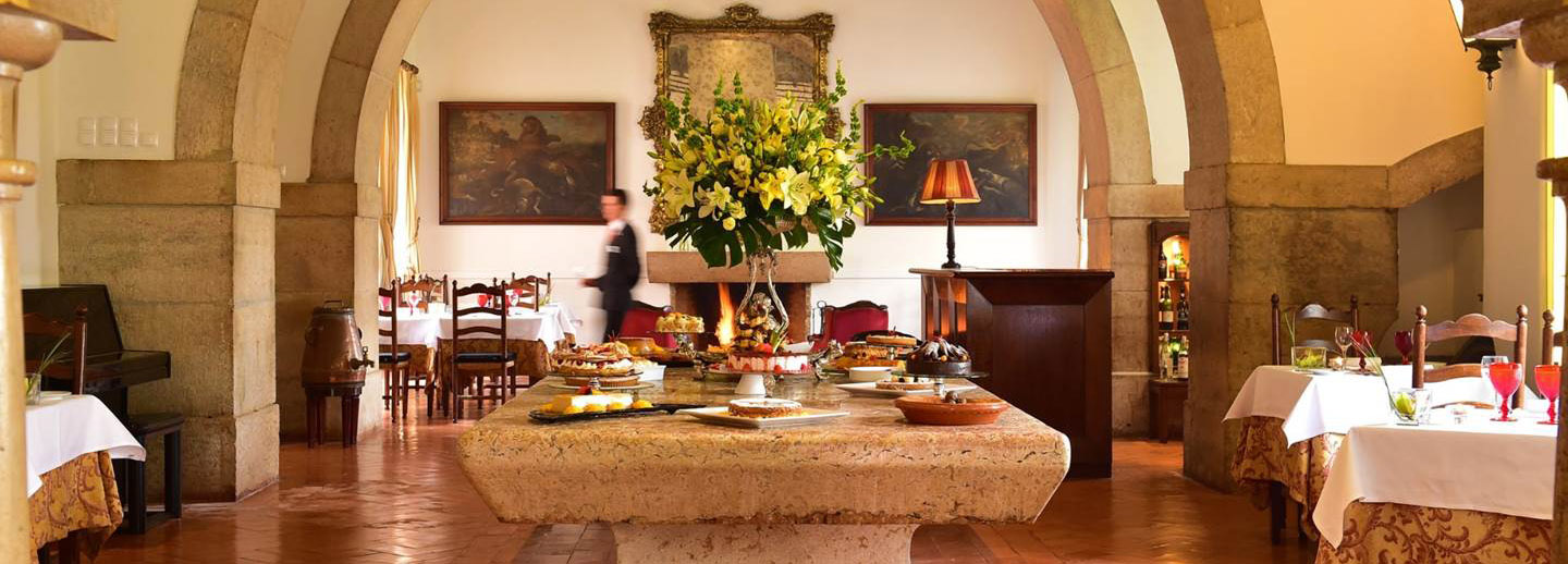 Eine Reise in der Zeit kann man einen Besuch des Hotelrestaurants der „Cozinha Velha“ nennen. Die einstige Palastküche ist im Grunde erhalten. Während Sie am Kamin oder am Fenster mit Blick in der Garten unter der kunstvoll dekorierten, hölzernen Decke sitzen und sich von den köstlichen Speisen verzaubern lassen, fällt es nicht schwer, sich die feinen Damen in ihren Reifröcken vorzustellen, wie sich Tee aus Kupferkännchen servieren. Die Komtess Almeida Araujo führte einst feine Rezepte ein, als das Restaurant eröffnete, die dem prächtigen Palast gerecht werden sollten. Auch heute können Sie hier noch dinieren wie die Gräfin.