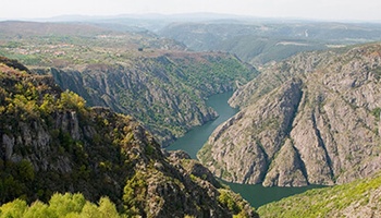 Das Inland ist bergig und durch ein ausgedehntes Waldgebiet mit vielen Flüssen gekennzeichnet. 30 % der Gesamtwaldfläche Spaniens befindet sich in Galicien, wobei ein großer Teil aus Eukalyptuswald besteht. Den wichtigsten Fluss bilden der Rio Miño und sein Nebenfluss der Rio Sils, der für seine fantastischen Bootsausflüge bekannt ist. Die vielen auf Stelzen stehenden Getreidespeicher aus dem 13. Jahrhundert, die hórreos, in denen Hirse und Mais getrocknet wurde, sind ein weiteres typisches Merkmal Galiciens. Aus Granit gebaut und mit Kreuzen verziert, erinnern sie an kleine Tempel.