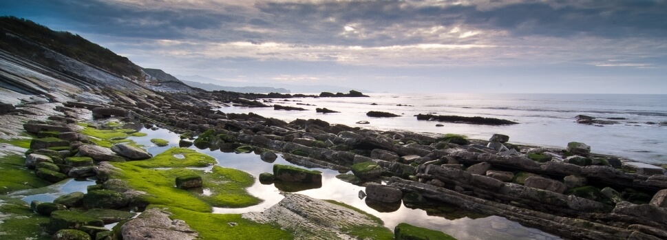 Die baskische Küste besteht aus Steilküste und z. T. vorgelagerten flachen Felsen, die durch die Brandung des Meeres erodiert wurden. Der acht Kilometer lange Küstenstreifen zwischen Mutriku, Deba und Zumaia westlich von San Sebastián ist das reichste Meeresökosystem der gesamten baskischen Küste. Genießen Sie die fantastischen Ausblicke über die zerklüftete Küste und den sogenannten Flysch, eine in ihrer Gesteinszusammensetzung abwechslungsreiche Wechselfolge verschiedener Sediment-Schichten. Außerdem besteht die Möglichkeit zu einer eindrucksvollen Wanderung auf dem Küsten-Jakobsweg.