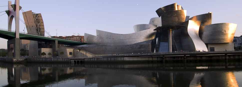 1992 geplant und 1997 eröffnet hat der Architekt Frank Gehry eine in Form eines Schiffes futuristische Kunstkathedrale aus Stahl und Titan am Fluss Nervión entstehen lassen. Einer Collage gleich, wirkt sie auf den Betrachter wie ein kalkuliertes Chaos aus Einzelteilen, die in jedem Moment zusammen zu fallen drohen und die der Modernen und Zeitgenössischen Kunst gewidmet ist. Seit Oktober 1997 besitzt die Stadt Zugriff auf fast zehntausend Werke bedeutender Künstler des 20. Jahrhunderts. Gemeinsam mit den Sammlungen in New York und Venedig handelt es sich dabei um die größte und wichtigste Privatsammlung moderner und zeitgenössischer Kunst der Welt.