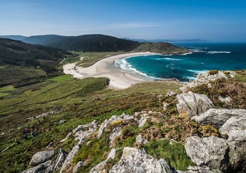 Der Abstieg führt über das Dorf Canduas zur Playa de Rebordelo, einem stillen Ort für eine Rast. Über die aussichtsreiche Punta do Cabalo und das kleine Coído de Frexufre wandern Sie schließlich am Strand entlang bis ins malerische Laxe, wo weiße Häuser, eine romanische Dorfkirche und ein weiter Sandstrand auf Sie warten.