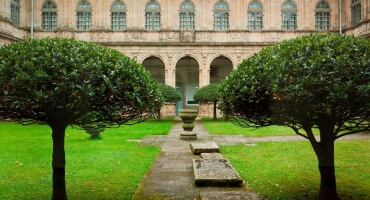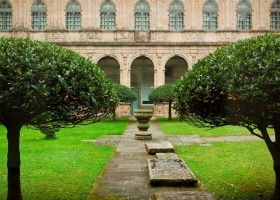 Pazo San Lorenzo aus dem 13. Jahrhundert mit seinem gotischen Kreuzgang in dem sich heute u.a. ein Restaurant befindet. Hier befindet sich ein bezaubernder Garten mit Buchsbäumen, deren zurechtgeschnittene Formen etwas Geheimnisvolles ausstrahlen und zum Nachdenken animieren.