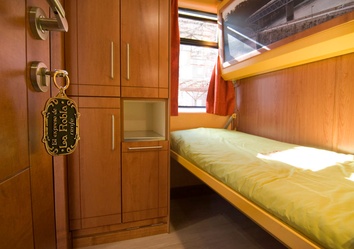 Die Kabinenfläche beträgt ca. 3,5m². Jede Kabine verfügt über zwei übereinander angeordnete Kojen (Etagenbetten), wie sie aus klassischen Nachtzügen bekannt sind.