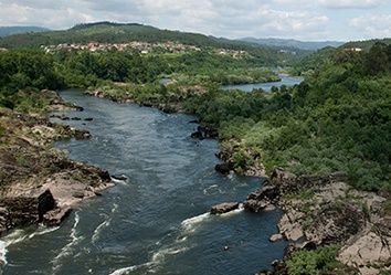 Das Inland ist bergig und durch ein ausgedehntes Waldgebiet mit vielen Flüssen gekennzeichnet. 30 % der Gesamtwaldfläche Spaniens befindet sich in Galicien, wobei ein großer Teil aus Eukalyptuswald besteht. Den wichtigsten Fluss bilden der Rio Miño und sein Nebenfluss der Rio Sils, der für seine fantastischen Bootsausflüge bekannt ist. Die vielen auf Stelzen stehenden Getreidespeicher aus dem 13. Jahrhundert, die hórreos, in denen Hirse und Mais getrocknet wurde, sind ein weiteres typisches Merkmal Galiciens. Aus Granit gebaut und mit Kreuzen verziert, erinnern sie an kleine Tempel.