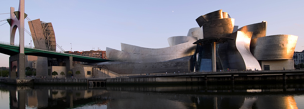 Die größte Stadt Nordspaniens mit ca. 355.000 Einwohnern ist ein Beispiel dafür, wie Architektur und Innovationen eine Stadt komplett verändern können. Bis Ende der 80er Anfang der 90er Jahre war Bilbao Symbol für dampfende Schlote und graue Industrieanlagen. Mit der Krise der Werftindustrie sucht die Stadt nach einer neuen Identität, die durch gewagte Architektur und hochkarätige Kunst erreicht wurde. Absolutes architektonisches Meisterwerk und Antriebsmotor dieses neuen Images ist das von Frank Gehry mit Hilfe von Computer-Aided-Design (CAD) gebaute Guggenheim-Museum und dem damit verbundenen Guggenheim-Effekt, zu dem neben dem Bau emblematischer Gebäude auch der Ausbau der städtischen Infrastruktur gehörte. Es wurden weitere Stararchitekten wie Norman Foster, Cesar Pelli, Rafael Moneo, Arata Isozaki, Philippe Starck und last not least Santiago Calatrava in die Stadt geholt, um Bilbao in den Rang einer Avantgarde-Stadt aufsteigen zu lassen, nach dem Motto: "Madrid, Sevilla, Barcelona....und jetzt Bilbao".