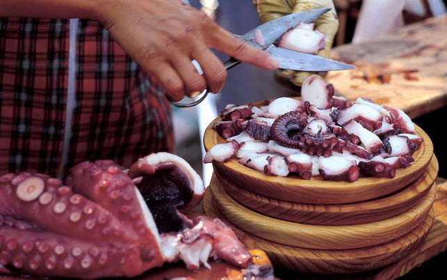 An der Küste ist der Reichtum an Fisch und Meeresfrüchten überwältigend. Empfehlenswert ist auf jeden Fall ein Fischeintopf oder das wohl bekannteste galicische Gericht "pulpo a feira", gekochte Krake mit Öl und Paprikagewürz. Im Landesinneren sind kräftige Fleischeintöpfe beliebt und als Nachtisch wird oft Milchreis "arroz con leche", Pfannkuchen oder ein mit Apfelmus servierter Flan serviert.