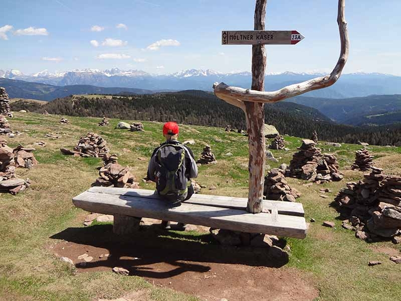 Das harmonische Dorf Mölten auf über 1.100 m befindet sich inmitten einer spektakulären Naturlandschaft. Die Wanderroute durchquert blumenübersäte Wiesen, duftende Lärchenwälder und Almen. Es geht bis zu den „Steinernen Mandln“ hinauf - Steinfiguren auf der Hohen Reisch, einer rund 2.000 m hohen Kuppe. Man sagt: Sie stehen dort seit mindestens 500 Jahren, und ihre Entstehung ist bis heute nicht eindeutig geklärt. Von hier obern genießen Sie einen fabelhaften Bergblick auf den Rosengarten und weitere eindrückliche Berggipfel. Auf Ihrer Rundtour begleiten Sie Natur pur und atemberaubende Weitblicke auf das Etschtal zu Ihren Füßen, sowie zahlreiche beeindruckende Berggipfel.