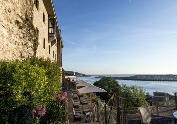 Hinter den schweren Steinmauern offenbart sich ein fein ausgeleuchtetes Interieur mit kunstvoll restaurierten Gewölben, historischen Wandteppichen – darunter Entwürfe von Rubens zur Geschichte des Achill – und einem atmosphärischen Innenhof. Von der weitläufigen Terrasse und vielen Zimmern öffnet sich ein prachtvoller Blick über die französische Küste und das Meer – ein Panorama, das Geschichte und Landschaft miteinander verschmelzen lässt.