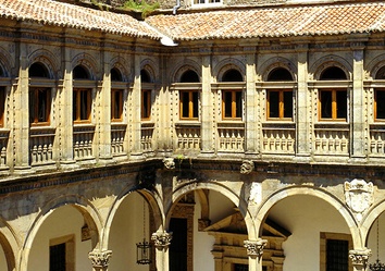 Der Parador Hostal dos Reis Católicos, 1499 als königliches Krankenhaus für den anwachsenden Pilgerstrom gegründet, gilt heute als das älteste Hotel der Welt und ist eine Mischung aus Geschichte, Kunst und Tradition, Traum der Pilger und Symbol von Santiago. Er befindet sich auf der Plaza del Obradoiro neben der Kathedrale von Santiago de Compostela, einer der meistbesuchten Kathedralen der Welt, und hat im Laufe der Jahrhunderte das Pilgertum miterlebt. Er wurde als königliches Krankenhaus gegründet, um den Katholischen Königen eine Unterkunft zu bieten, und heute ist er als Hostal dos Reis Católicos bekannt. Das historische Gebäude bewahrt die platereske Fassade an der Außenseite, vier Kreuzgänge, elegante Korridore und Flure, spektakuläre Räume und Säle sowie ein Museum im Inneren.
