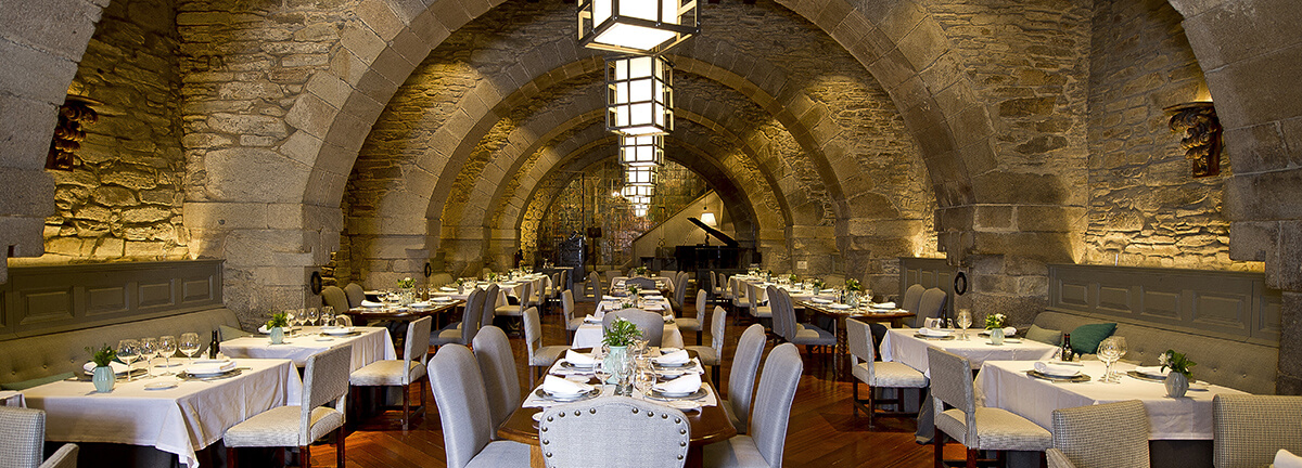 Die Küche des Paradors: Mitten in einer der weltweit meistbesuchten Provinzhauptstädte möchten wir Ihren Gaumen erobern. Im Hostal dos Reis Católicos werden Sie von zwei Restaurants gleichermaßen in Versuchung geführt. Das Restaurante dos Reis ist in den ehemaligen Pferdeställen dieses königlichen Hospizes untergebracht. Der spektakuläre Raum, der sich im halben Kellergeschoss befindet, sein Steingewölbe und die elegante Dekoration lassen die atlantische Küche zu einem nicht zu wiederholenden Erlebnis werden. In der Bar des Hotels – auch diese befindet sich im Untergeschoss – werden Cocktails und guter Kaffee angeboten.