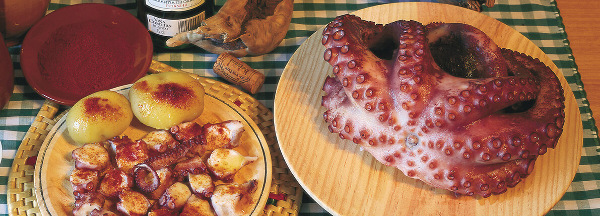 Küche und Wein: An der Küste ist der Reichtum an Fisch und Meeresfrüchten überwältigend. Empfehlenswert ist auf jeden Fall ein Fischeintopf oder das wohl bekannteste galicische Gericht "pulpo a feira", gekochte Krake mit Öl und Paprikagewürz. Im Landesinneren sind kräftige Fleischeintöpfe beliebt und als Nachtisch wird oft Milchreis "arroz con leche", Pfannkuchen oder ein mit Apfelmus servierter Flan serviert.