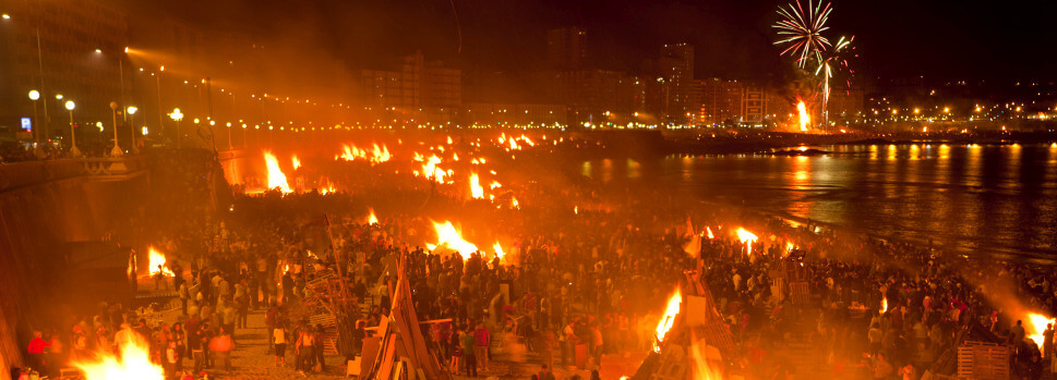 Stück für Stück werden bei Anbruch der Nacht Hunderte von Feuern entzündet. Besonders beeindruckend sind die Feuer an den Stränden von Riazor und Orzán. Um Mitternacht spiegelt sich die Farbe des Feuers im Wasser des Atlantischen Ozeans: Die „Feuernacht“ – „a noite da queima“ – hat ihren Höhepunkt erreicht und ein riesiger, zwei Tage zuvor an dieser Stelle errichteter Scheiterhaufen beginnt zu brennen. Nicht selten folgen zahlreiche Personen einem Reinigungsritual und tauchen in das Wasser vor Riazor ein. Am Himmel erstrahlen Feuerwerke; das Fest geht bis in die frühen Morgenstunden hinein weiter in den Straßen von La Coruña.
