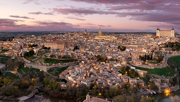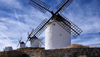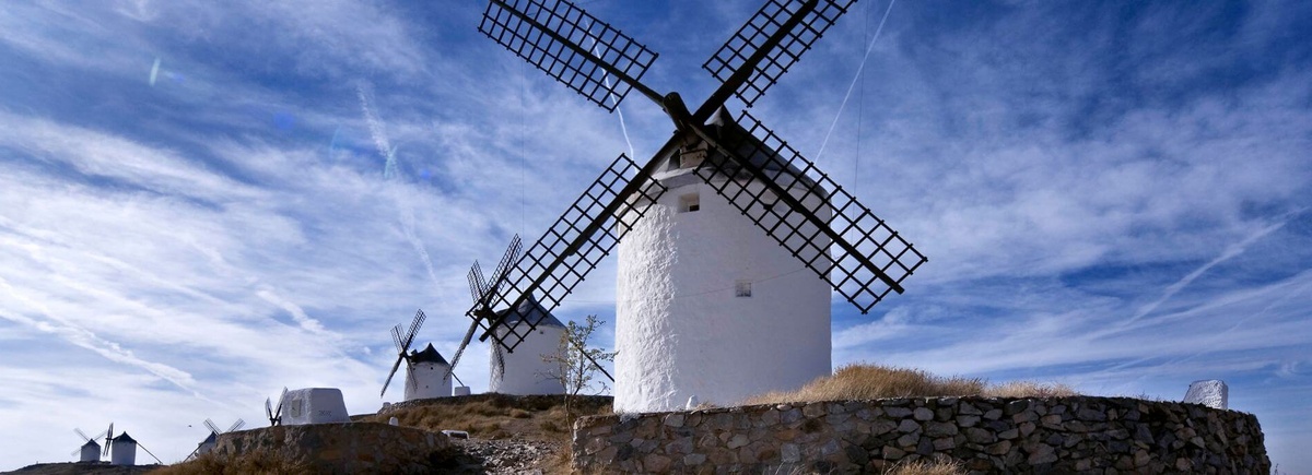 Südlich liegt die Region Kastilien-La Mancha, weltweit bekannt als Heimat von Miguel Cervantes' tragisch-komischen Ritters Don Quijote. Die Windmühlen, gegen die der Ritter von der traurigen Gestalt seinen aussichtlosen Kampf führte, prägen auch heute noch die weite Landschaft. Toledo beherbergt neben dem imposanten Alcázar als Wahrzeichen die gotische Kathedrale, Moscheebauten, Synagogen und Klöster aus längst vergangenen Jahrhunderten. Auch ein Besuch des Franziskanerklosters San Juan de los Reyes lohnt sich. Talavera de la Reina lockt mit interessanter Kachelmalkunst. Aber auch die hängenden Häuser von Cuenca - wie so viele Stätten in Zentralspanien ebenfalls Welterbe - bieten einen unvergesslichen Anblick.