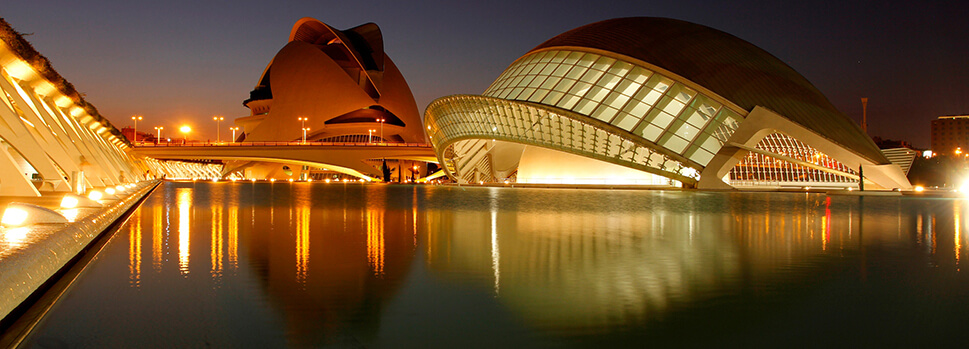Ciudad de las Artes y de las Ciencias: Die Stadt der Künste und der Wissenschaften, 15 Autominuten von der Altstadt entfernt, wurde von dem valencianischen Architekten Santiago Calatrava entworfen. Es handelt sich dabei um einen Mehrzweckkomplex mit einem riesigen Kultur- und Unterhaltungsangebot. Hier können Sie sich von einer Opernvorstellung mitreißen lassen, Wissenschaft und Technik zum Anfassen erleben oder 3-D-Filme anschauen. Dieser Komplex mit seinen sechs verschiedenen Unterhaltungsangeboten erstreckt sich auf 2 Kilometern im trocken gelegten Flussbett des Túria und ist ein Musterbeispiel für die moderne Architektur der Stadt.