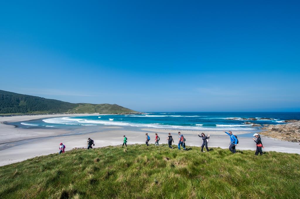 Der Abstieg führt über das Dorf Canduas zur Playa de Rebordelo, einem stillen Ort für eine Rast. Über die aussichtsreiche Punta do Cabalo und das kleine Coído de Frexufre wandern Sie schließlich am Strand entlang bis ins malerische Laxe, wo weiße Häuser, eine romanische Dorfkirche und ein weiter Sandstrand auf Sie warten.