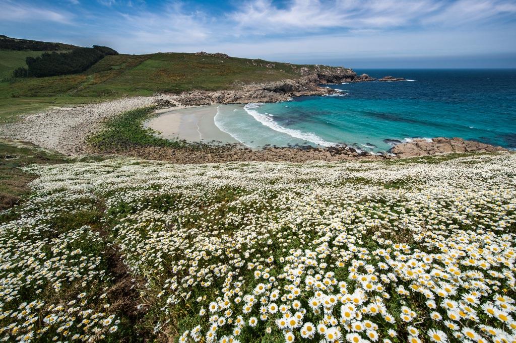 Ihre Wanderreise beginnt im malerischen Malpica, einem traditionellen Fischerort, wo das Leben noch im Rhythmus des Meeres schlägt. Entlang der Strandpromenade und des Playa de Area Maior steigen Sie hinauf zur Kapelle San Adrián, die – der Legende nach – einem Heiligen gewidmet ist, der im 16. Jahrhundert eine Schlangenplage besiegte. Von hier bietet sich ein weiter Blick auf die Islas Sisargas, ein unbewohntes Naturreservat für Seevögel.