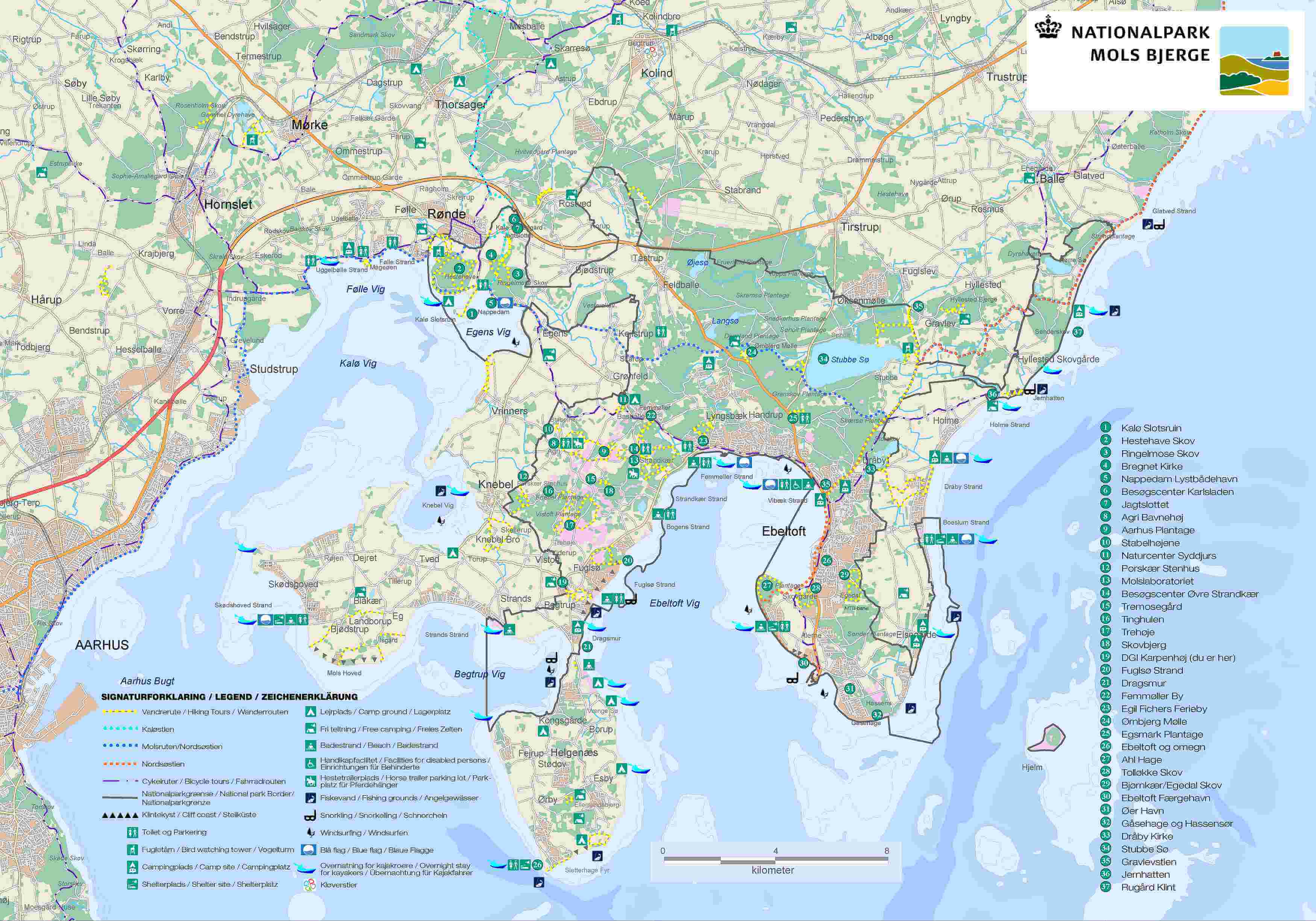 Auf 180 km² Fläche verteilt, befindet sich im Nationalpark Mols Bjerge eine einzigartige Eiszeitlandschaft mit ca. 80 km Küste, seltenen Lebensräumen und interessanter Kulturgeschichte, große Wälder, Heide- und Weideland, zahlreichen Seen sowie Küsten-und Meeresgebiete