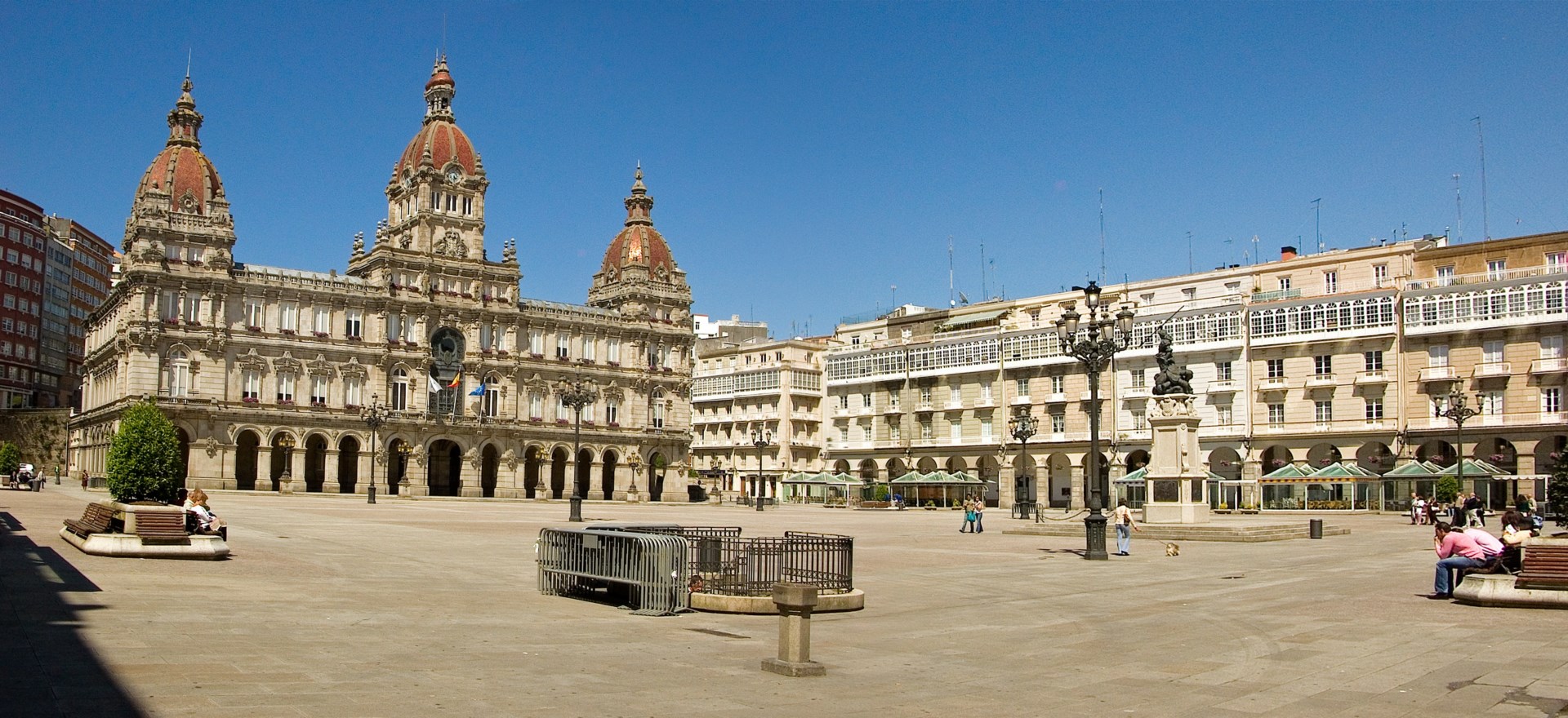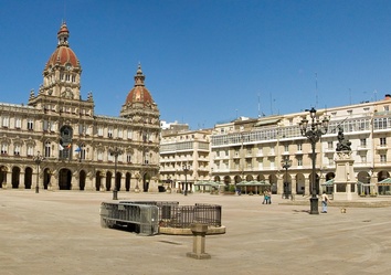 Praza María Pita: Genannt wurde der Platz nach der galicischen Nationalheldin María Pita, die 1589 A Coruña gegen die Engländer verteidigte. Hauptplatz der Stadt, auf dem sich die Menschen zur Abendstunde in den Arkadencafés treffen.