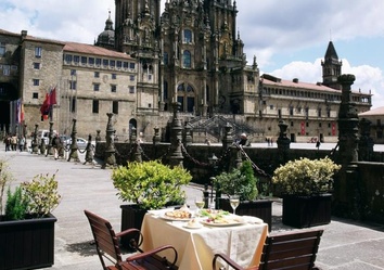 Der Parador, 1499 als königliches Krankenhaus für den anwachsenden Pilgerstrom gegründet, gilt heute als das älteste Hotel der Welt und ist eine Mischung aus Geschichte, Kunst und Tradition, Traum der Pilger und Symbol von Santiago. Zusammen mit der Kathedrale bildet er auf dem Plaza de Obradoiro einen zauberhaften goldenen Winkel, der die Schönheit einer der meist besuchten Städte der Welt prägt.
