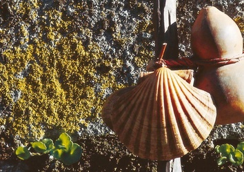 Die Jakobsmuschel wurde zu einem Symbol des Jakobswegs, weil sie in früheren Zeiten als typisches Fundstück von den Küsten Galiciens von den Pilgern als Beweis für die Beendigung der Pilgerfahrt mit zurück in ihre Heimat genommen wurde.
