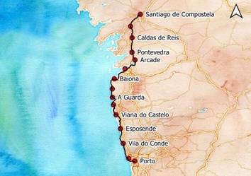 15 Tage Pilgern und Wohnen in eleganten Pousadas und Paradores Jakobsweg-Wanderreise auf dem Camino portugués "Küstenweg" von Porto nach Santiago de Compostela