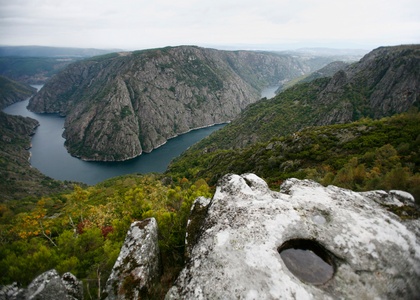 Das Inland ist bergig und durch ein ausgedehntes Waldgebiet mit vielen Flüssen gekennzeichnet. 30 % der Gesamtwaldfläche Spaniens befindet sich in Galicien, wobei ein großer Teil aus Eukalyptuswald besteht. Den wichtigsten Fluss bilden der Rio Miño und sein Nebenfluss der Rio Sils, der für seine fantastischen Bootsausflüge bekannt ist. Die vielen auf Stelzen stehenden Getreidespeicher aus dem 13. Jahrhundert, die hórreos, in denen Hirse und Mais getrocknet wurde, sind ein weiteres typisches Merkmal Galiciens. Aus Granit gebaut und mit Kreuzen verziert, erinnern sie an kleine Tempel.