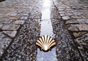 Die Jakobsmuschel wurde zu einem Symbol des Jakobswegs, weil sie in früheren Zeiten als typisches Fundstück von den Küsten Galiciens von den Pilgern als Beweis für die Beendigung der Pilgerfahrt mit zurück in ihre Heimat genommen wurde.