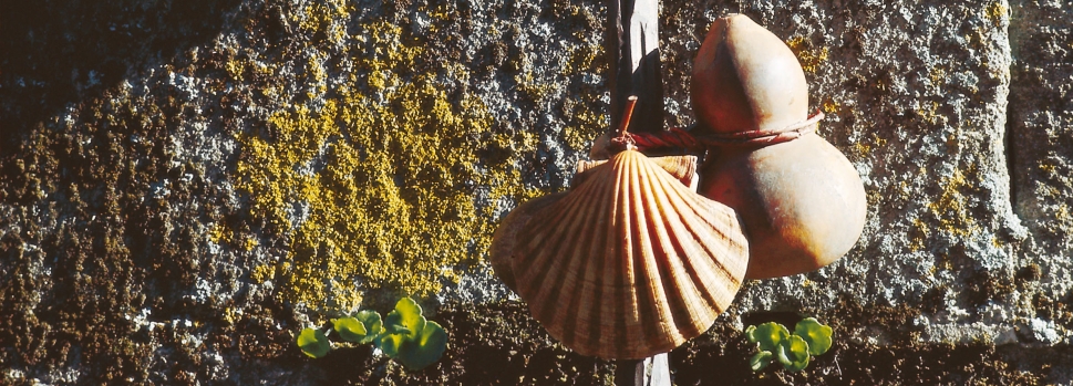 Die Jakobsmuschel wurde zu einem Symbol des Jakobswegs, weil sie in früheren Zeiten als typisches Fundstück von den Küsten Galiciens von den Pilgern als Beweis für die Beendigung der Pilgerfahrt mit zurück in ihre Heimat genommen wurde.
