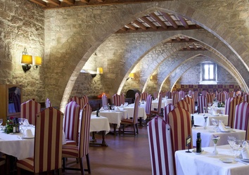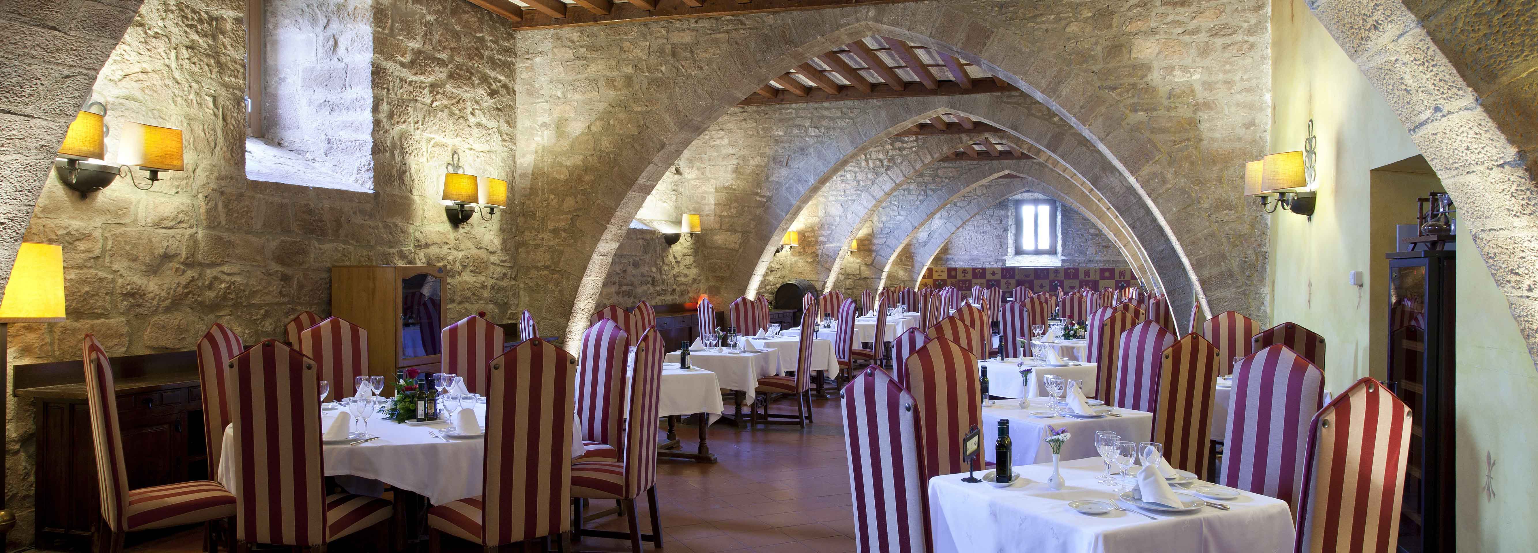 Die katalanische Küche bietet im Speisesaal des Paradors Auberginenterrine mit Schweinefüßchen, vielfältige Wurstwaren und insbesondere den Holzkohlengrill, auf dem die Lammschulter eine Hauptrolle spielt.
