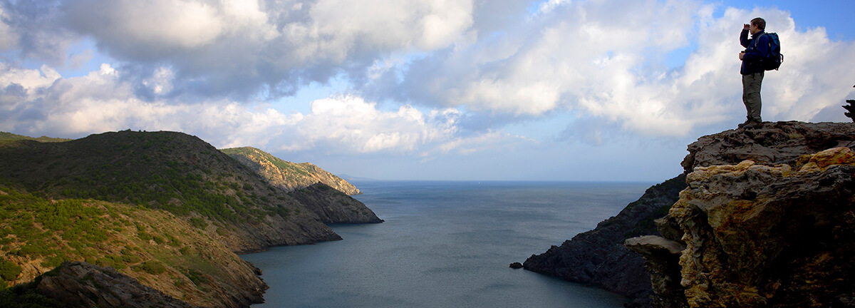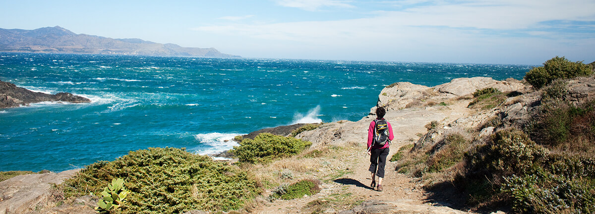 Entdecken Sie die "Wilde Küste", die Costa Brava von Colliure (Frankreich) bis Sant Feliu de Guíxols in Katalonien, Spanien. Wer die Küstenlandschaft am liebsten zu Fuß kennenlernen möchte, der wandert auf den alten Küstenwegen Camins de Ronda. Diese traditionsreichen Wege, die über Jahrhunderte von Fischern, Küstenwächtern und Schmugglern genutzt wurden, bieten spektakuläre Aussichten über die Küste, ihre Buchten und das Mittelmeer. Über steile Felsen und durch schattige Pinienwälder führen sie in versteckte Buchten, aber auch zu den berühmtesten Küstenorten der Costa Brava. Der Küstenwanderweg Camins de Ronda entlang der Costa Brava ist ein alter, früher von Schmugglern und Polizeikontrollen, Grenzwächtern und Fischern genutzter Küstenweg. Von Colliure über Portbou an der französischen Grenze bis nach Blanes schlängelt er sich in seinem natürlichen Verlauf an der gesamten Costa Brava entlang.