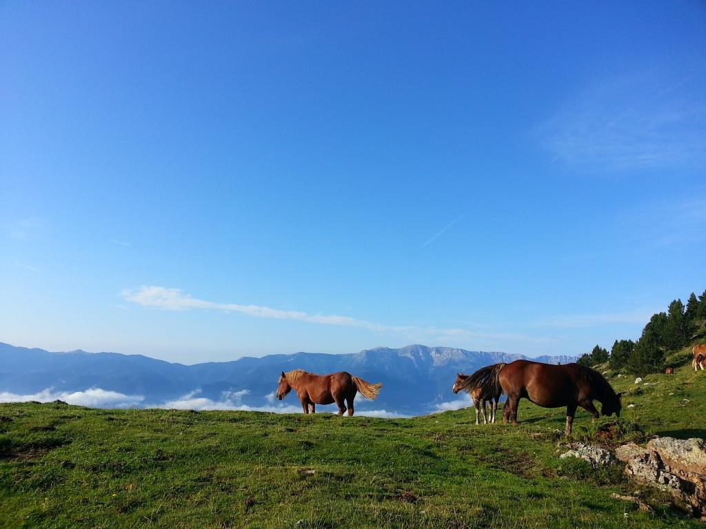 Sie steigen durch Wald und Weideland hinab nach Mérens-les-Vals, bekannt für das gleichnamige Gebirgspferd Mérens – kräftig, gutmütig, genügsam. Noch heute begegnet man diesen Tieren im Sommer auf den Weiden – ein lebendiges Erbe der Bergbauern und Händler, die mit ihnen einst die Pyrenäen überquerten.